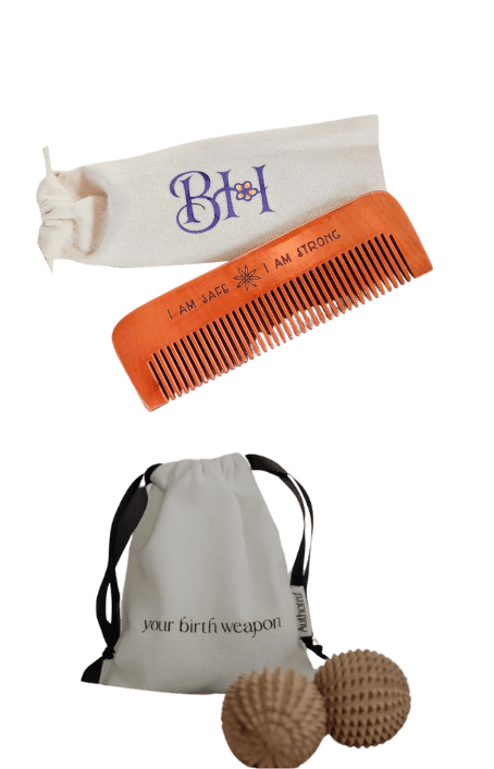 Designed to work on via ‘Gate control theory’ these acupressure tools will allow activate the acupressure points in your hands helping to distract away from the discomfort of contractions. Both the comb and the birth weapons work on this theory, so it’s just a case of choosing what will work best for you!